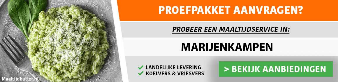 In deze gemeente bezorgen onder meer Kantenklaarmaaltijden.nl, Maaltijdservice.nl, Vers Aan Tafel, Diepvriesman, Apetito, Mealhero. De thuismaaltijden van deze aanbieders moet u nog wel even opwarmen. De verse maaltijden aan huis in Marijenkampen worden vaak bezorgd door zorggroepen en organisaties voor maatschappelijk werk in Marijenkampen.